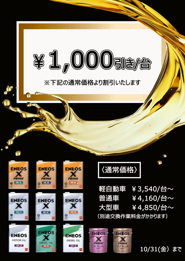 オイル、税込¥1,000引きいたします