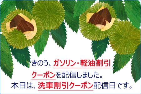 10/10(金)配信の「お知らせ」内容紹介 ガソリン・軽油割引クーポン&洗車割引クーポン配信のお知らせ タイヤ:超特価 在庫限りセール 【見せるクーポン】オイル 洗車秋の感謝フェア開催中! ※「タイヤ:超特価 在庫限りセール」対象外店舗:Dr.Driveセルフ三条店、Dr.Driveセルフ西川店...